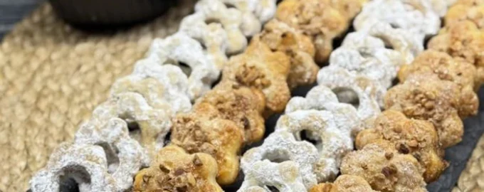 - בסיס הבצק הוא שלושה מרכיבים בלבד – שומן חזיר, שמנת חמוצה וקמח. בזכות השילוב הזה, העוגיות פריכות במיוחד, פירוריות ובו בזמן רכות. ותוספות קטנות בצורת פרג, סוכר או אגוזים מאפשרות להכין מספר אפשרויות מבצק אחד.